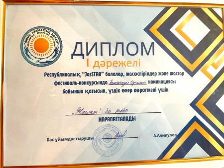 Оқушыларымыз "JasSTAR"республикалық фестиваль-конкурсынан жүлдегер атанды.
