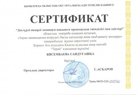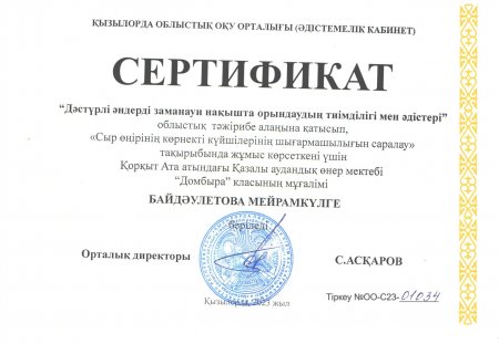 Құттықтаймыз! Мектеп ұстаздары 2023 жылғы 12 сәуір күні облыстық оқу орталығының жұмыс жоспарына сәйкес «Дәстүрлі әндерді заманауи нақышта орындаудың тиімділігі мен әдістері» тақырыбында өткізілген облыстық тәжірибе алаңына қатысты.
